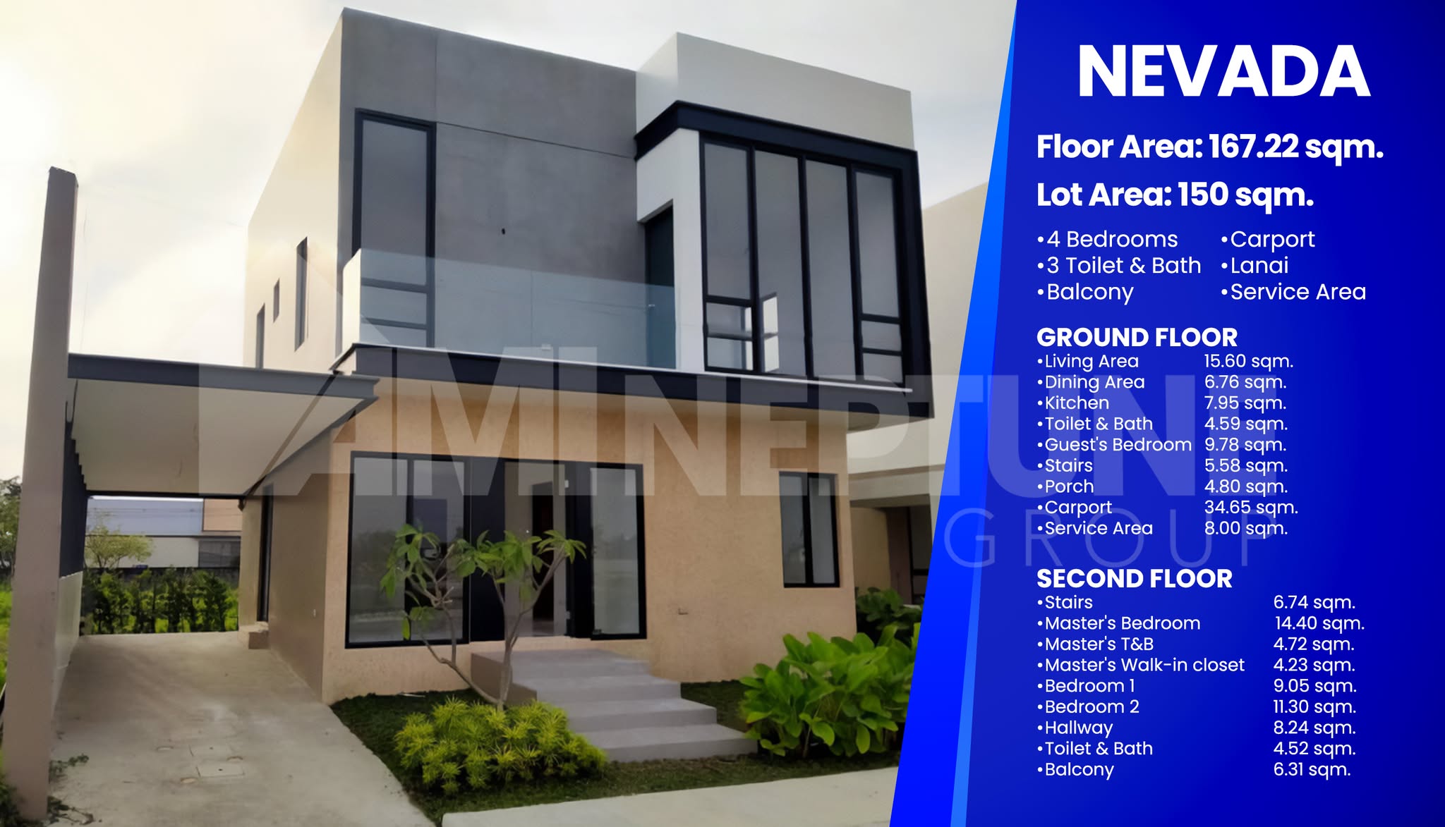 Est.: ₱14,379,000.00 View Additional Details Nevada Lot Area 150 sqm Floor Area 167.22 sqm 4 Beds 3 Bath Brgy. Sanja Mayor Tanza, Cavite